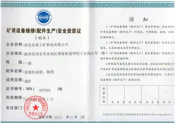 采煤機(jī)大修資格證